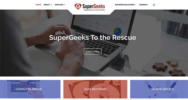 E-Bits PC and Laptop — Yes, simple and clean is an effective strategy for building a website, but you could stand to do a bit more if you wanted to stand out from the crowd. E-bits website out of Seattle has a lot of interesting things going on. The background is broken up by some attractive skyline photos, and all the service links are bordered in bright colors. You find some photos of real customers at the bottom. This is an effective way to create a human connection with your visitors. That’s very important for building trust.