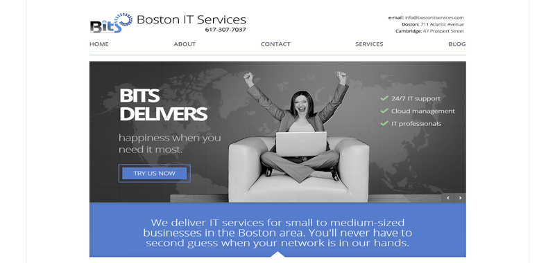 Simple & smart at the same time is possible, as this Boston IT website demonstrates. The plain white background just serves to draw attention to the sharply contrasting black images. They want people to know that they’re in the right place without even having to think about it, so they’ve included some tasteful and attention-grabbing pictures of modern technology. They want clients to think “I have no idea what I’m looking at, but these kids clearly do”, and that’s just the reaction you want from your own site.