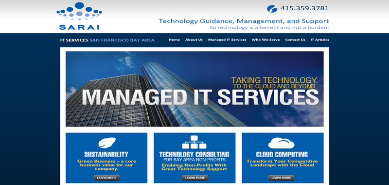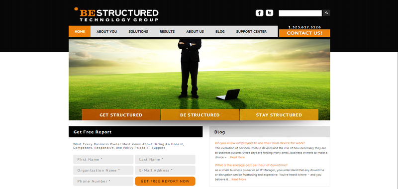 Here’s another great IT services website that shows you how to take advantage of color. The sliding gallery of images is large and attractive, and care obviously went into making the colors in each of the rotating pictures match the color scheme of the website. Visitors can easily find the services they’re looking for through the menu at the top, or the selections below the images.
