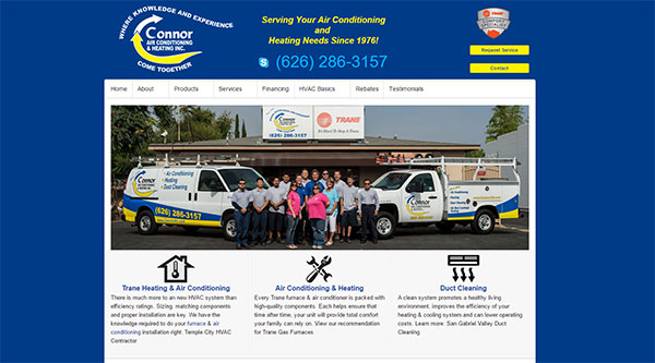 This website from Connor Air Conditioning and Heating in Los Angeles isn’t flashy. Instead it’s straightforward, creating a connection with potential customers by putting its staff at the forefront. In addition, the offered services are very clearly laid out (heating and air conditioning, duct cleaning) and a customer can contact Connor by clicking on the button on the top right or calling the phone number that is front and center.