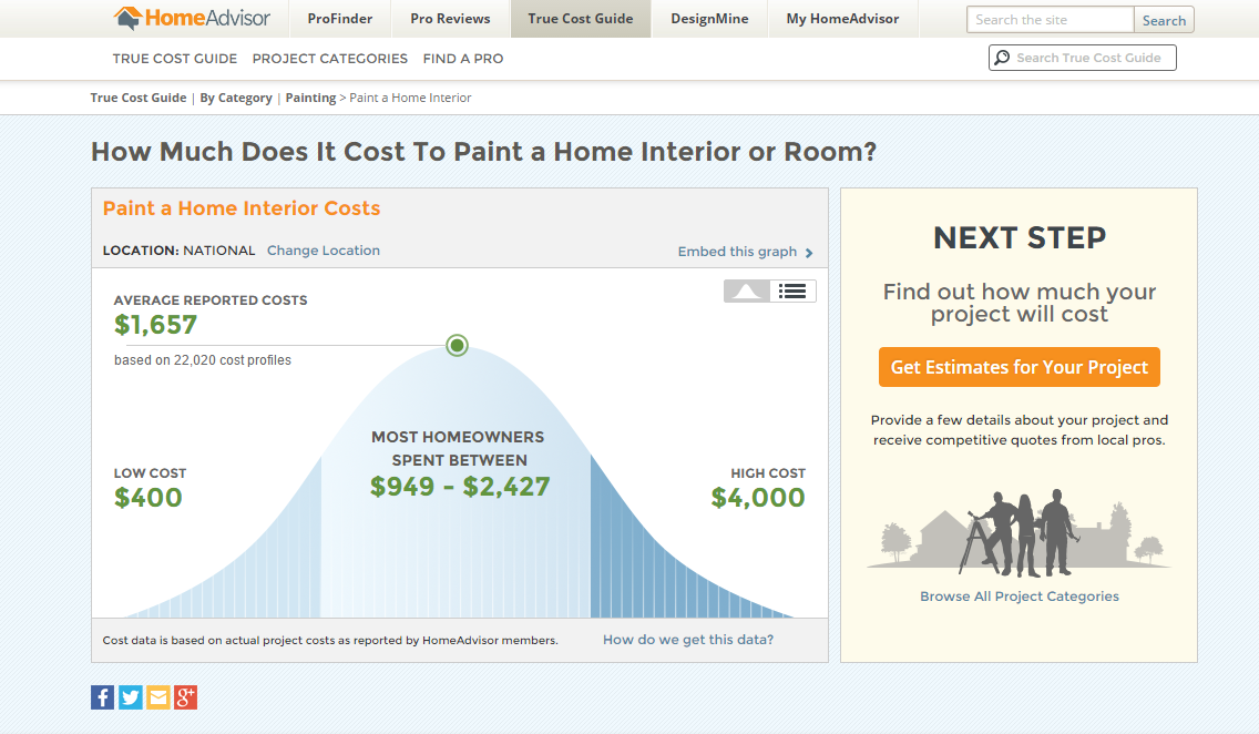 At crowd sourced data tools like this, you can drill down on particular locales and task types, making it easier to make sure you’re competitive. It’s also free, so you can run each job through the tool to ensure you’re on track. They also include breakdowns on what others are charging for various elements of a larger job, like a full bathroom remodel: